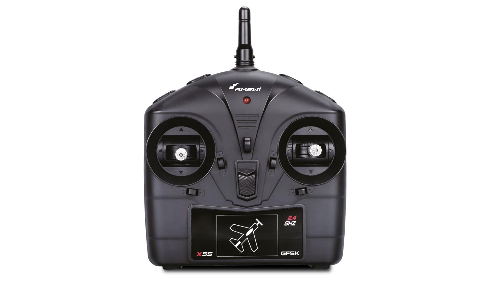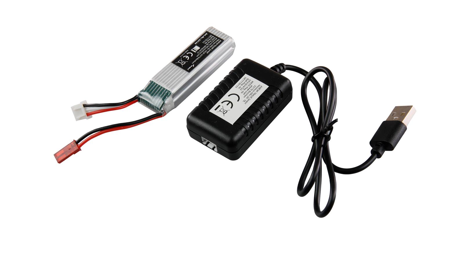 Technische Daten: Spannweite: 550mm Länge: 487mm Höhe: 155mm Gewicht: 240g Hauptmaterial: Hochfester Verbundwerkstoff EPP Schub: 1:1 Motor: 1806 Brushless Motor Regler: All in One Platine mit zusätzlichem Brushless Regler und Gyro Servos: 4x Mini Servo Digital Fernsteuerung: 8-Kanal, 2,4GHz Reichweite: ca. 150m Akku: LiPo 2S 7,4V 600mAh 25C Softcase JST/BEC-Stecker, 60x16x14mm, 30g Flugzeit: ca. 8-10 Minuten, je nach Flugstil Ladegerät: USB Ladezeit: ca. 120min