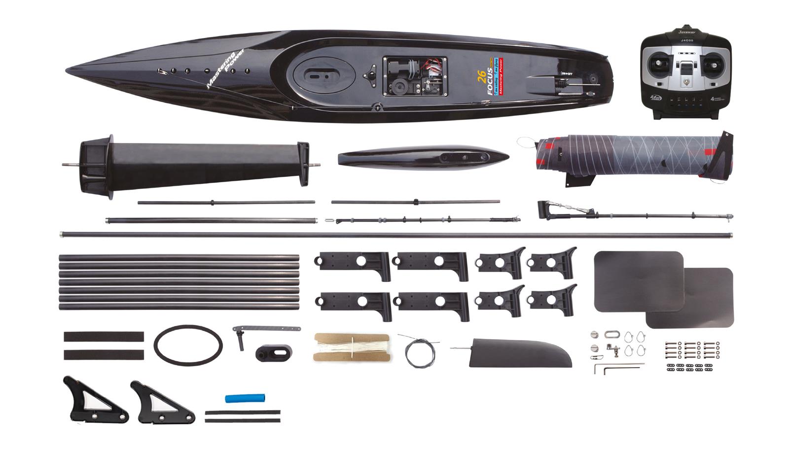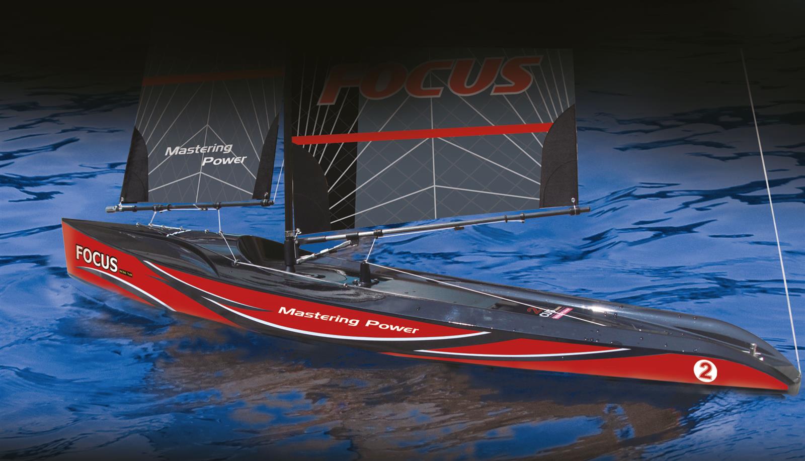 "Länge läuft" – niemals war die alte Segler-Weisheit zutreffender als bei unserer Focus III Racing Segelyacht. Ein auf hohe Geschwindigkeit optimierter Kunststoffrumpf mit hoher Festigkeit und großem Segel bei über 500cm² Gesamtfläche lassen das Boot eindrucksvoll mit hoher Geschwindigkeit bei passendem Wind über das Wasser gleiten. Der Mast sowie die beiden Ausleger bestehen aus Kohlefaser. Das Windenservo ist für mehr Präzision und bessere Steuerbarkeit mit einer höheren Stellkraft und Metallgetriebe ausgestattet. Dieses formschöne Boot ist ein absoluter Hingucker auf jedem See. Das neue Design besticht durch gute Sichtbarkeit auch auf weitere Entfernung.