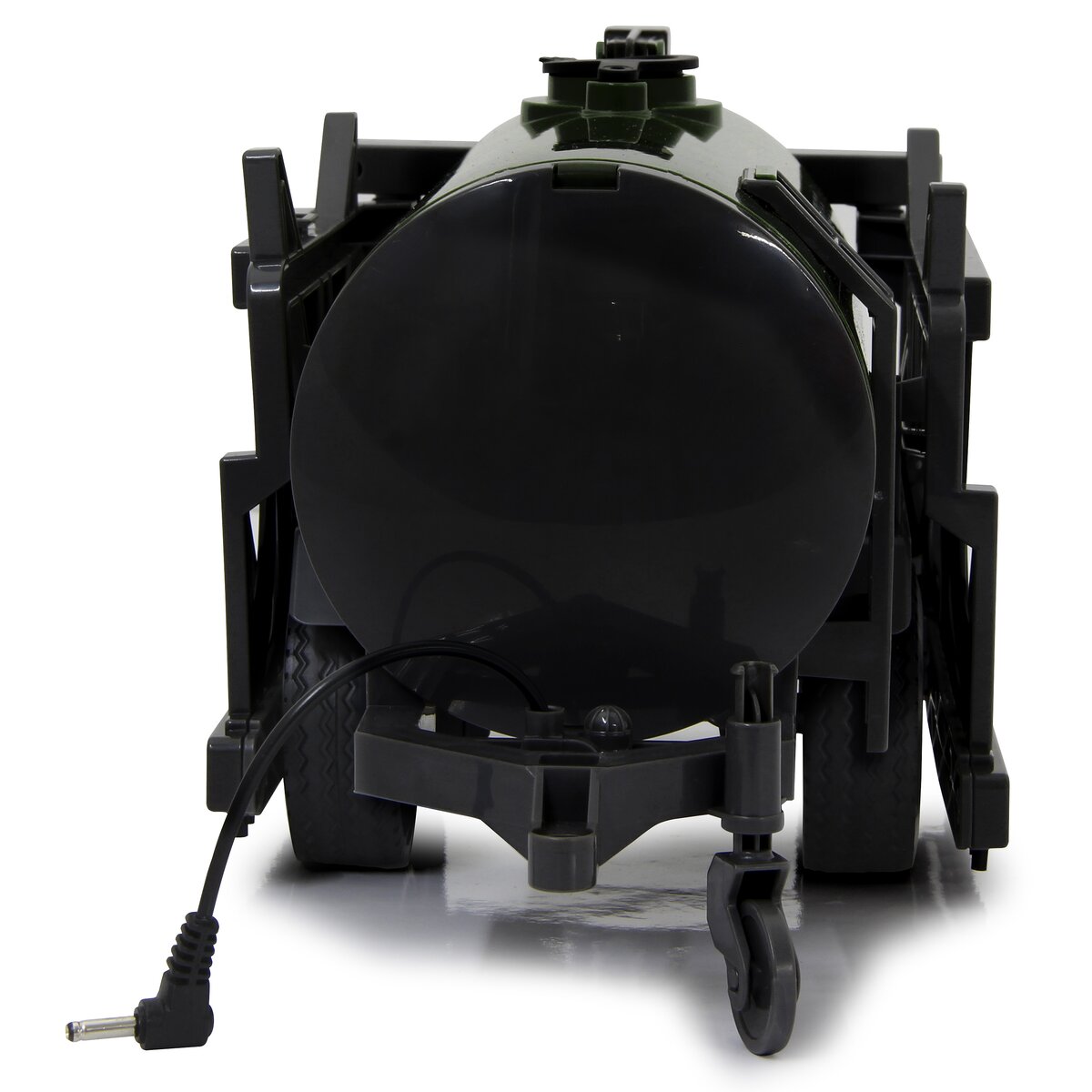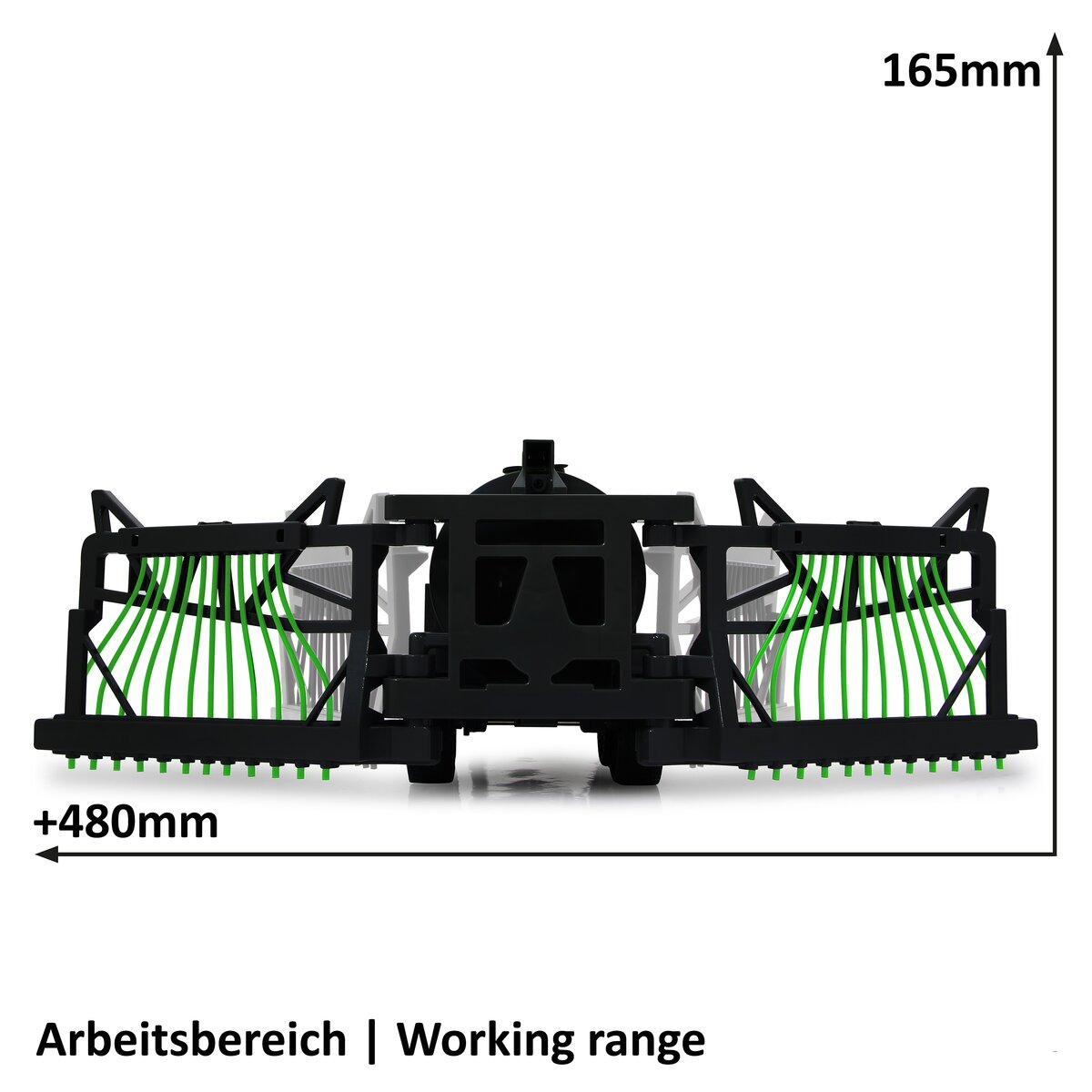 Die optimale Ergänzung zu den ferngesteuerten Traktoren von JAMARA kommt jetzt in Form eines Fasswagens mit Schlauchverteiler. Einfach ankoppeln und mit dem Zugfahrzeug verbinden, schon ist der offiziell lizensierte Garant Fasswagen einsatzbereit. Der große Tank kann mit ca. 450ml Flüssigkeit befüllt werden und nachdem die Schleppschlauchverteiler auf volle Arbeitsbreite ausgeklappt wurden kann die Arbeit beginnen. Mit einem Druck auf die Fernsteuerung des Traktors beginnt der Fasswagen die eingefüllte Flüssigkeit durch die Schläuche auf den Boden zu spritzen. So können sich die kleinen Landwirte wie richtig große Farmer fühlen.