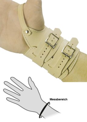 Produktdetails: hautfreundliches Fahlleder | lohgegerbt | genietet | 2 Schnallen | zur Stabilisierung des Handgelenks.
