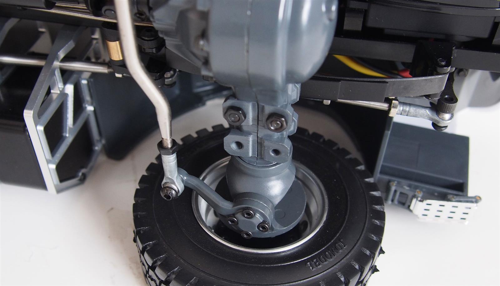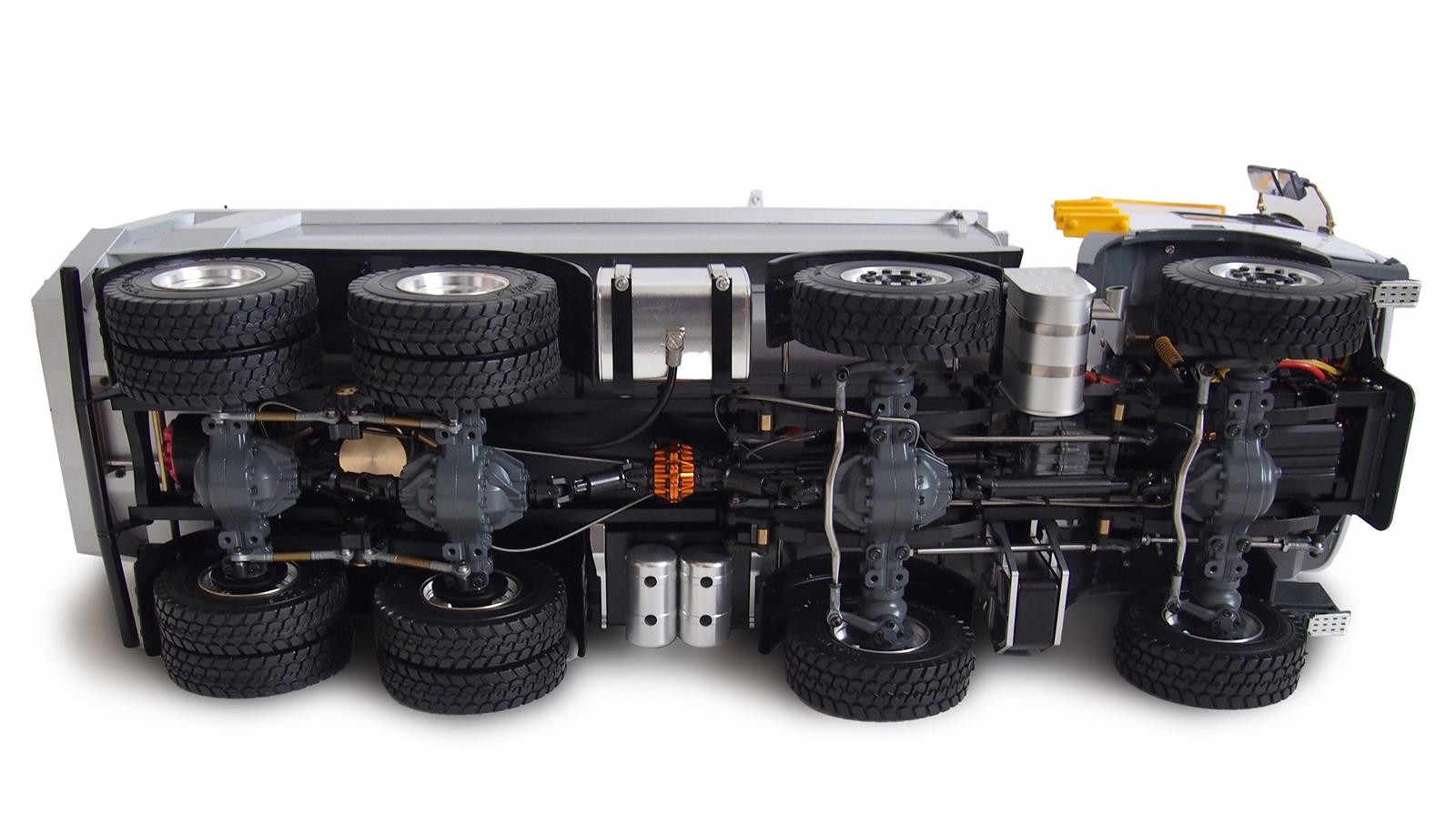 Sehr hochwertiger Scale LKW-Kipper im europäischen Stil (detaillierte Fahrerkabine aus Kunststoff) das Chassis, Achsen, Antriebe, Mulde etc. sind aus hochwertigem Metall hergestellt. Das Modell ist mit einem 2 – Gang Getriebe und vom Sender aus schaltbare Differentialsperren ausgerüstet, welches den Einsatz auch in unwegsamen Geländen problemlos zulässt. Mittels des starken Hydraulik Systems lassen sich größere Lasten problemlos transportieren und abkippen. Viele Anbauteile wie z.B. der Tank usw. sind ebenfalls aus Aluminium hergestellt.