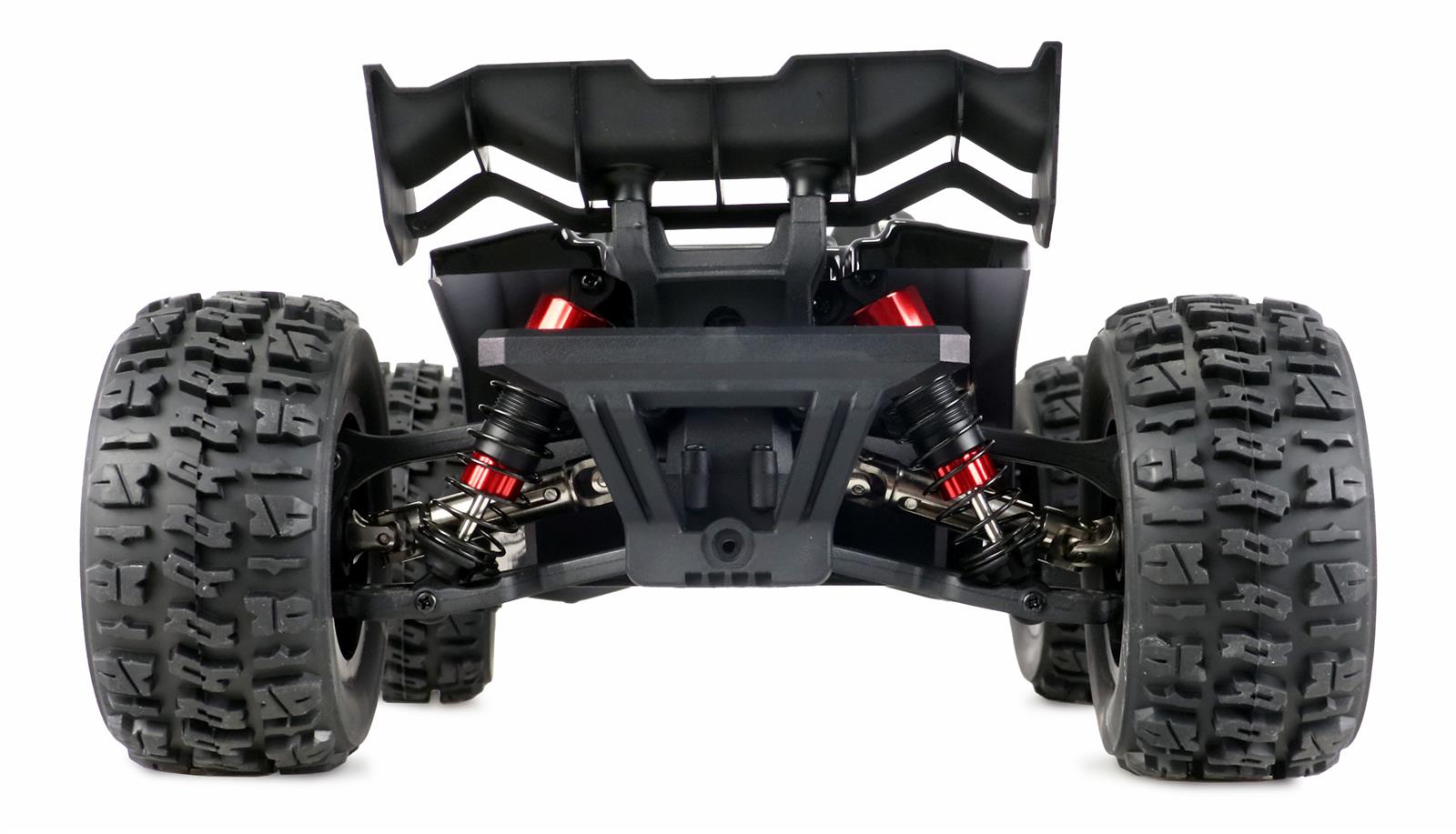 Der Hyper Go Brushless Truggy im Maßstab 1:14 kommt dank seines brachialen 4WD-Antriebs auf über 55km/h Top-Speed. Hochwertige Komponenten wie die Aluminium-Öldruck-Stoßdämpfer, Metall-CVD-Antriebswellen, -Kardanwellen, -Getriebe und -Differentiale sorgen für eine hohe Langlebigkeit dieses Offroad-Racers. Ein aktiver Lüfter am Motor ermöglicht optimale Kühlung. Das einstellbare Fahrwerk, welches auf einer Aluminium-Chassisplatte sitzt, sorgt für extreme Spurtreue. Eine Wheelie-Bar für mehr Fahrstabilität runden das Paket zusätzlich ab.
