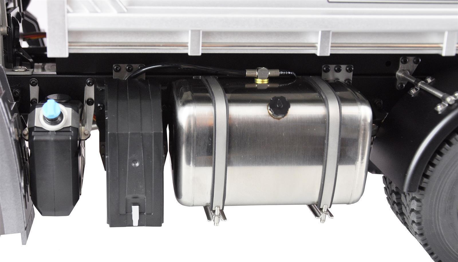 Exklusiver Lizenz-Lkw aus der Mercedes AROCS-Serie, der als 4x4 Modell mit hydraulisch betriebener Kippfunktion besticht und dank Scale-Optik im Maßstab 1:14 den Puls von Modellbauern höherschlagen lässt. Alle Funktionen des Fahrzeugs, das 7,2kg auf die Waage bringt, können über den Sender gesteuert werden. Chassis, Mulde, der gesamte Antriebsstrang und alle Wellen bestehen aus Metall. Für maximale Haltbarkeit der Komponenten ist also gesorgt. Die Scale Fahrerkabine mit vollständigem Interieur sowie die Scale High-Grip Gummibereifung inkl. Scale Felgen aus Metall runden das hochwertige Aussehen ab.