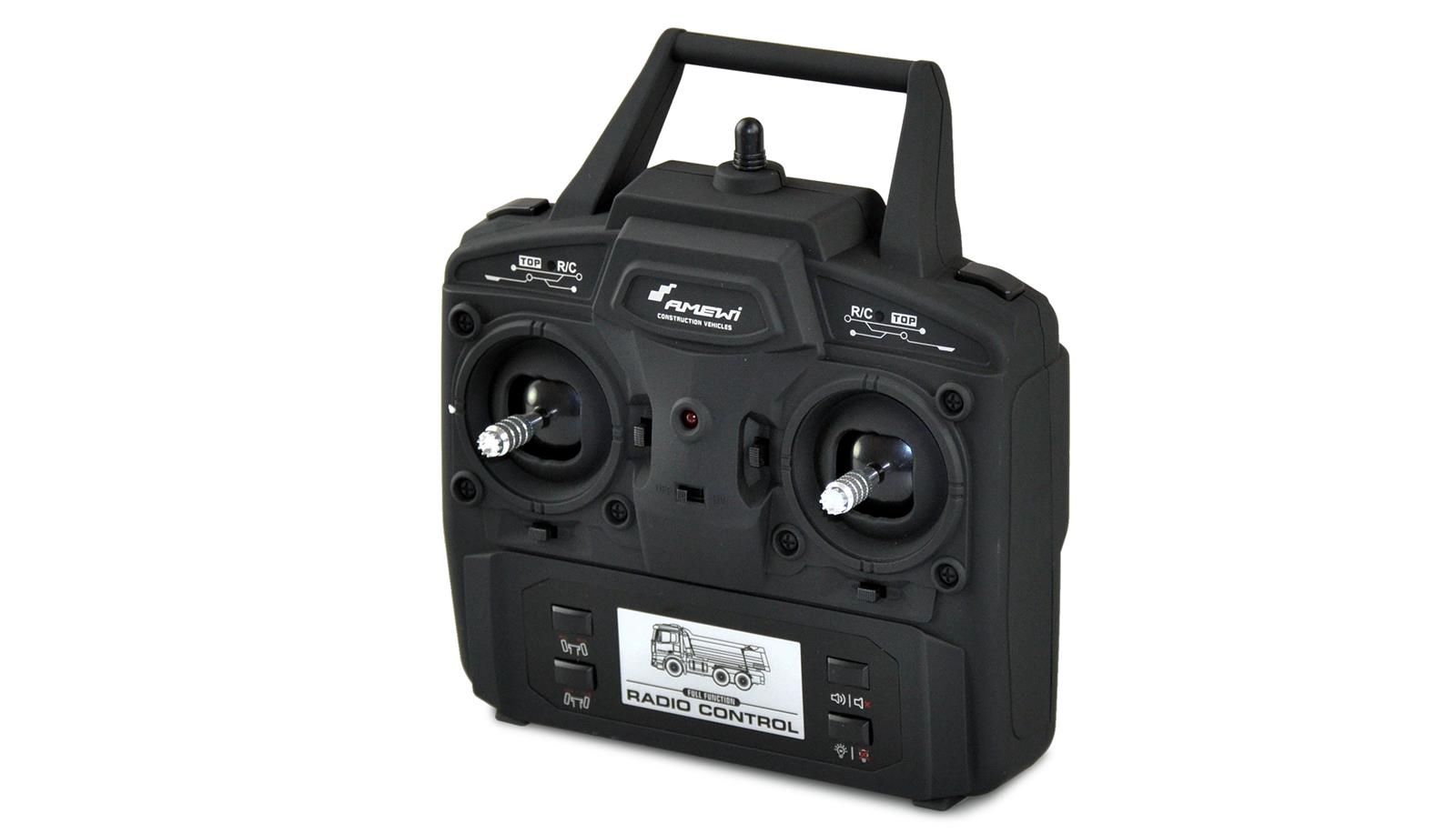 2,4GHz System (störungssicher) Funktionen: vorwärts / rückwärts / rechts / links, Sound an / aus, Licht, Mulde separat steuerbar