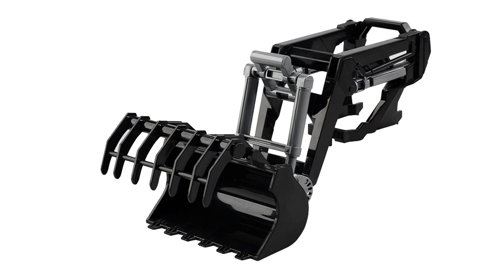 Greifschaufel an Ausleger: Manuell öffnen, schließen, senken und heben – um fantasievoll Waldarbeiten nachzuspielen