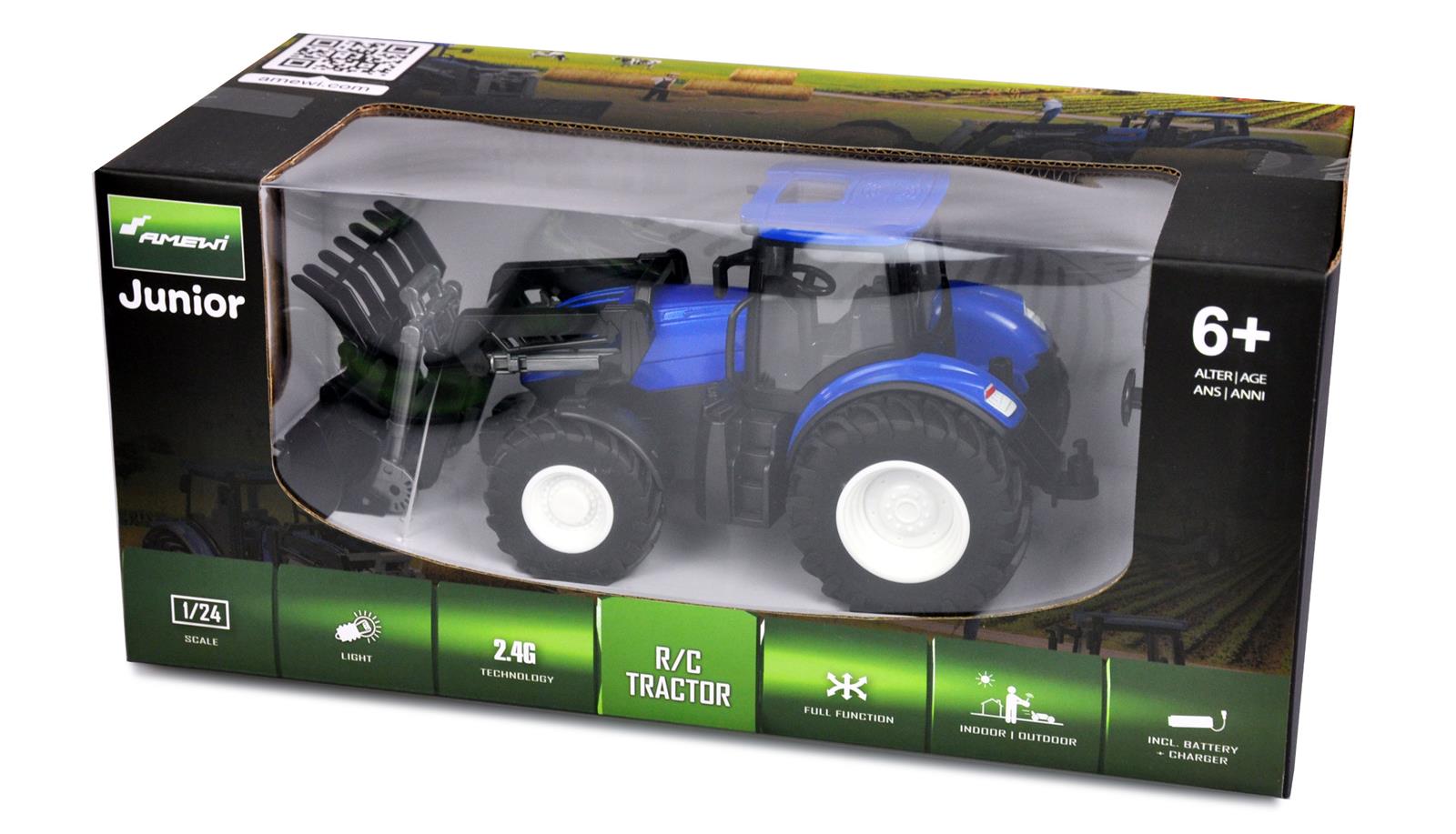 Aufnehmen und Transportieren von Gütern lässt sich jetzt ferngesteuert drinnen wie draußen wunderbar nachspielen. Bereits ab 6 Jahren geeignet, überzeugt der RC-Traktor im Maßstab 1:24 durch seine kindgerechte Funktionalität, die die Fantasie anregt: Ob auf dem Bauernhof- oder Waldarbeit, Treckerfahren mit einem Greifer macht einfach Laune.