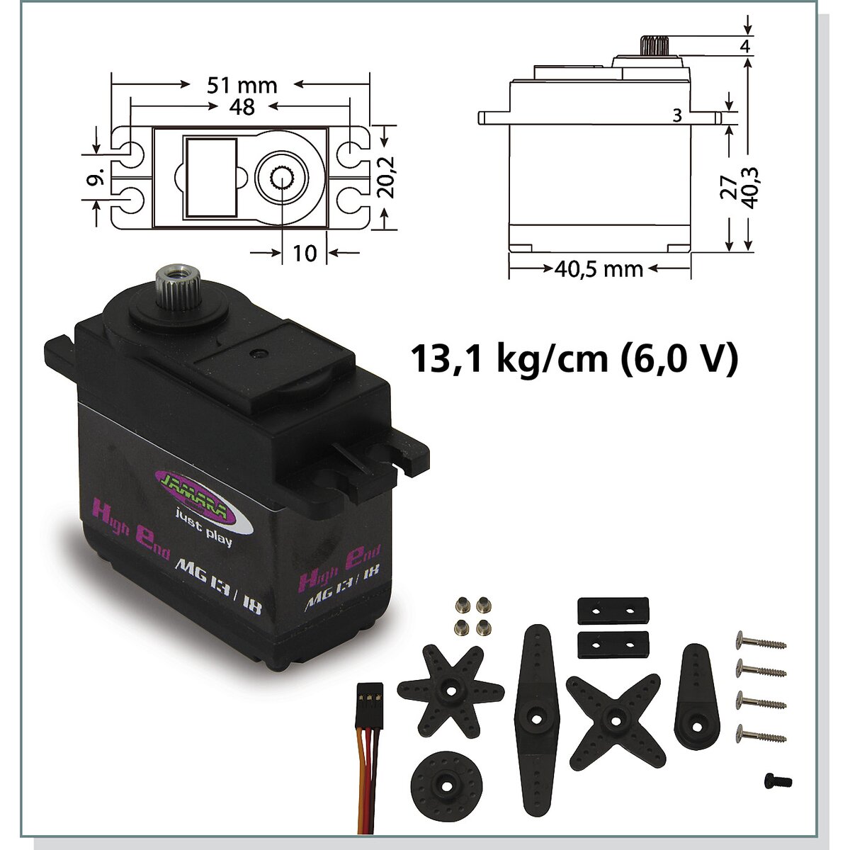 Stellzeit: 0,20 Sek./60 Grad (4,8 V) / 0,18 Sek. /60 Grad (6,0 V)
