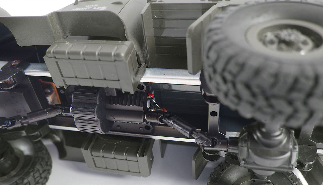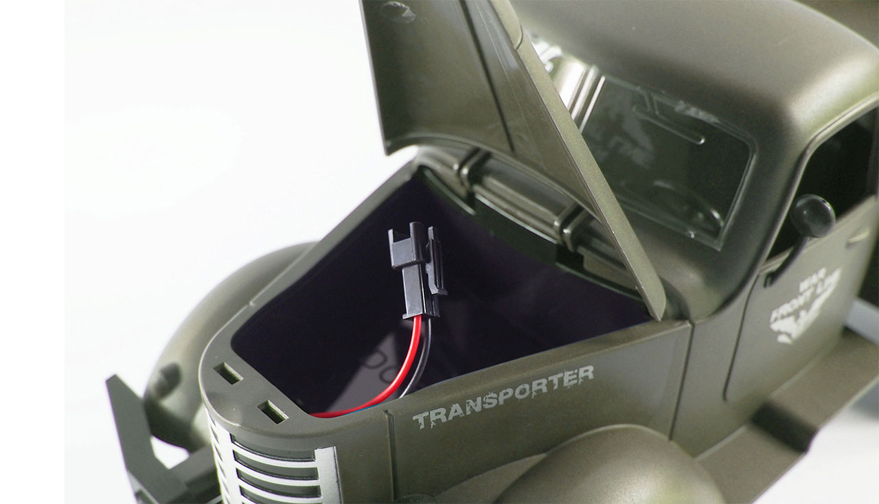 Der liebevoll gestaltete semi-scale Nachbau des leichten Dodge Transporters der US Army aus dem Zweiten Weltkrieg ähnelt der legendären WC-Serie von denen zwischen 1940 und 1945 fast 350.000 Stück hergestellt wurden. Er wurde als Fracht- und Waffenträger, als Kommando-, Kranken- oder als Lieferwagen benutzt. Nach dem Krieg wurde die WC-Serie für zivile Zwecke weiterentwickelt und weltweit einer der erfolgreichsten und beliebtesten Lastwagen.Die Vielseitigkeit und die vielen Sonderausführungen waren legendär. Als großer Vorteil galt die Verwendung von austauschbaren Komponenten, die bei fast 80% der LKW'.s gleich waren.Das Modell besticht durch eine schöne Optik, prima Fahreigenschaften und gute Qualität. Mit 6WD Allradantrieb, Gummireifen, beleuchteten Frontscheinwerfern und echten Blattfedern.Das Einstiegsmodell wird RTR (Ready-To-Run) ausgeliefert und ist sofort nach dem Auspacken einsatzbereit. Akku, Fernsteuerung usw. sind bereits im Lieferumfang enthalten. Lediglich für den Sender werden noch zwei AA 1,5V Batterien benötigt.Technische Daten:Länge: 410mmBreite: 145mmHöhe: 150mmGewicht: 770g (ohne Akku)Frequenz: 2,4GHzAkku: 6V 700mAh HBX SteckerLieferumfang:Fahrzeug2,4GHz SenderAkkuUSB LadekabelAnleitungBenötigtes Zubehör:2x AA Batterien für den Sender